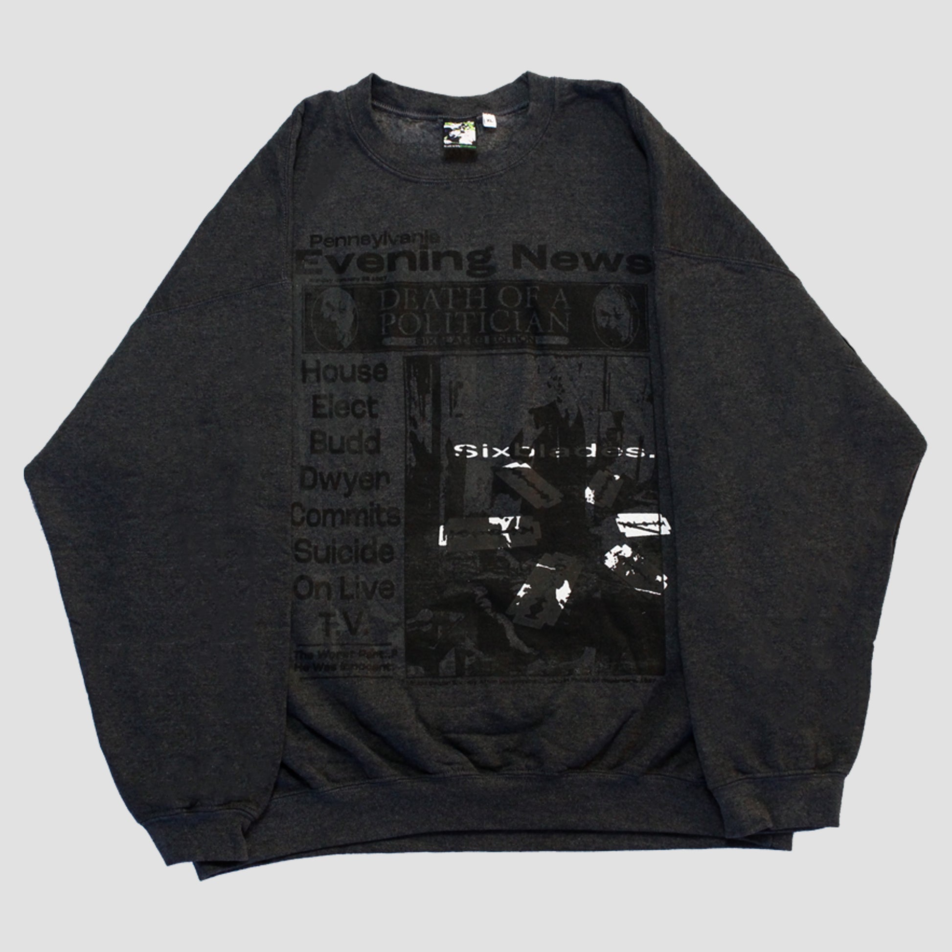 "EVERYTHING IS GREY//DWYER DIES" Pullover Crewneck Sweater (XL)