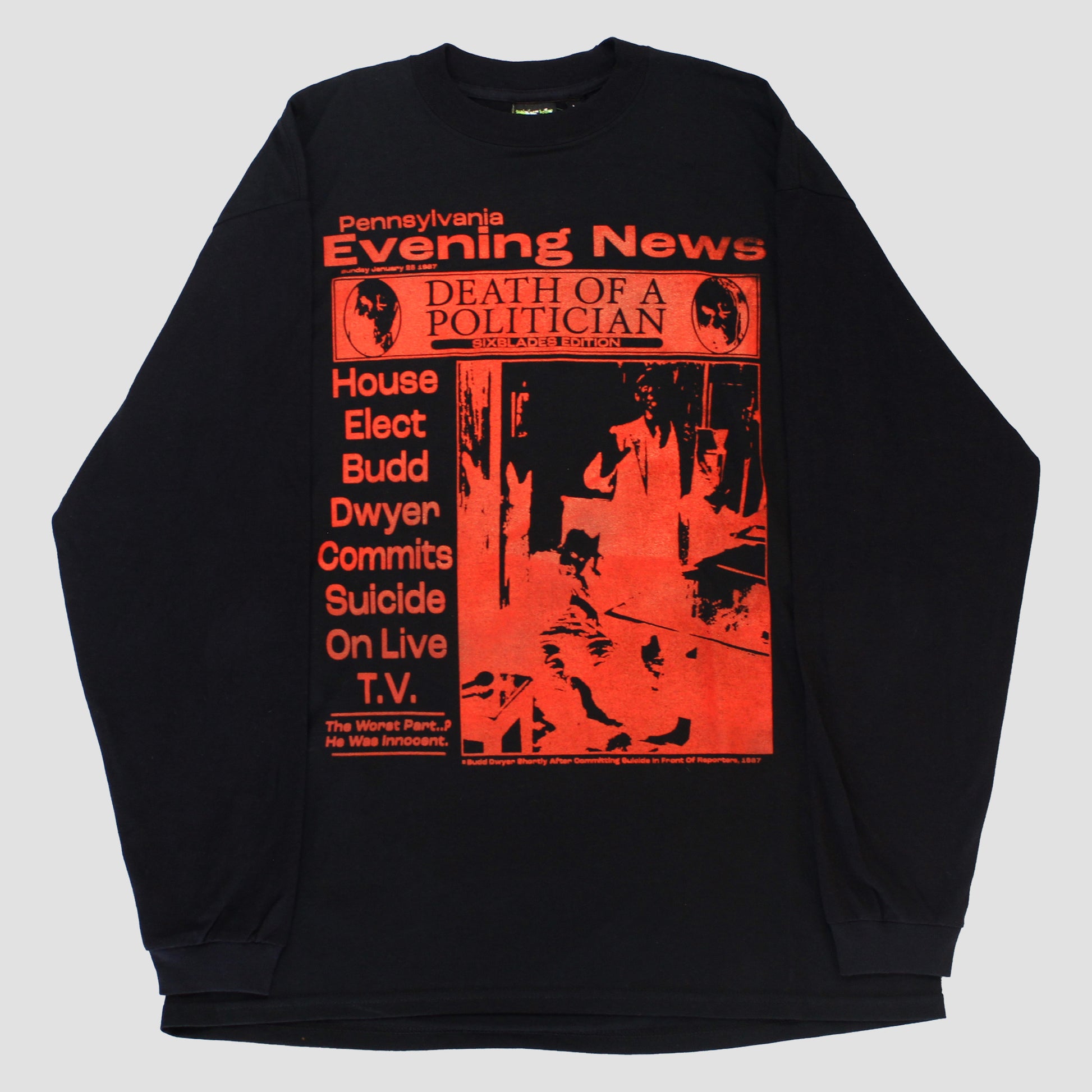 "PENNSYLVANIA EVENING NEWS//DIE LIKE DWYER" Heavyweight Longsleeve Tee (L)